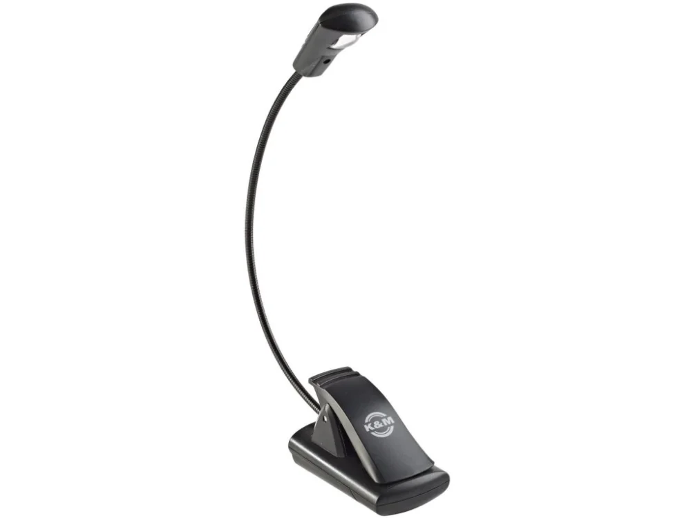 Univerzální lampička pro notové stojany/pulty »LED FlexLight« s jednou extra jasnou a dlouhotrvající LED diodou s výdrží až 100 000 hodin. Flexibilní husí krk poskytuje extrémně variabilní nastavitelný světelný paprsek. Extra široký klip (až 25 mm) se připojuje k desce notového stojanu nebo např.na dechový nástroj, knihu či k desce stolu. Může být také použit jako stojací světlo. Obsahuje 3 baterie (1,5 V AAA). Životnost baterie až 40 hodin. Vyrábí se v černé barvě.
