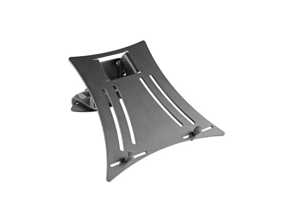 Držák na notebook vhodný pro klávesové stojany »Spider Pro« a »Baby Spider Pro«. Držák lze nastavit vodorovně nebo ve třech různých pozicích. Úhel náklonu 0 – 35°. Nosnost 8 kg. Rozměry desky 264 x 304 mm. Individuálně nastavitelné zarážky s gumovými uzávěry umožňují použití všech běžných modelů notebooků, mixérů apod. Vyrábí se v černé barvě.
