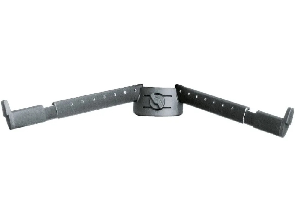 Pár hliníkových výsuvných ramen (B) s upevňovací svorkou pro klávesový stojan »Spider Pro«. Možnost náklonu 15°. Nastavitelná hloubka 290/470 mm, šířka 670/980 mm. Vyrábí se v černé, stříbrné a červené variantě.