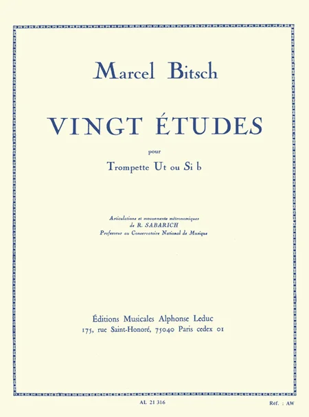 20 etud pro trubku od Marcel Bitsch. Etudy jsou vhodné pro konzervatoř nebo vysokou školu.