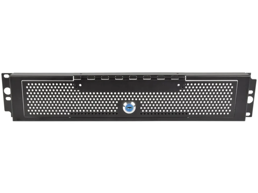 Bezpečnostní panel se zámkem pro ochranu zařízení umístěných v racku. Uzamykatelná dvířka se sadou klíčů, výška 2HE.