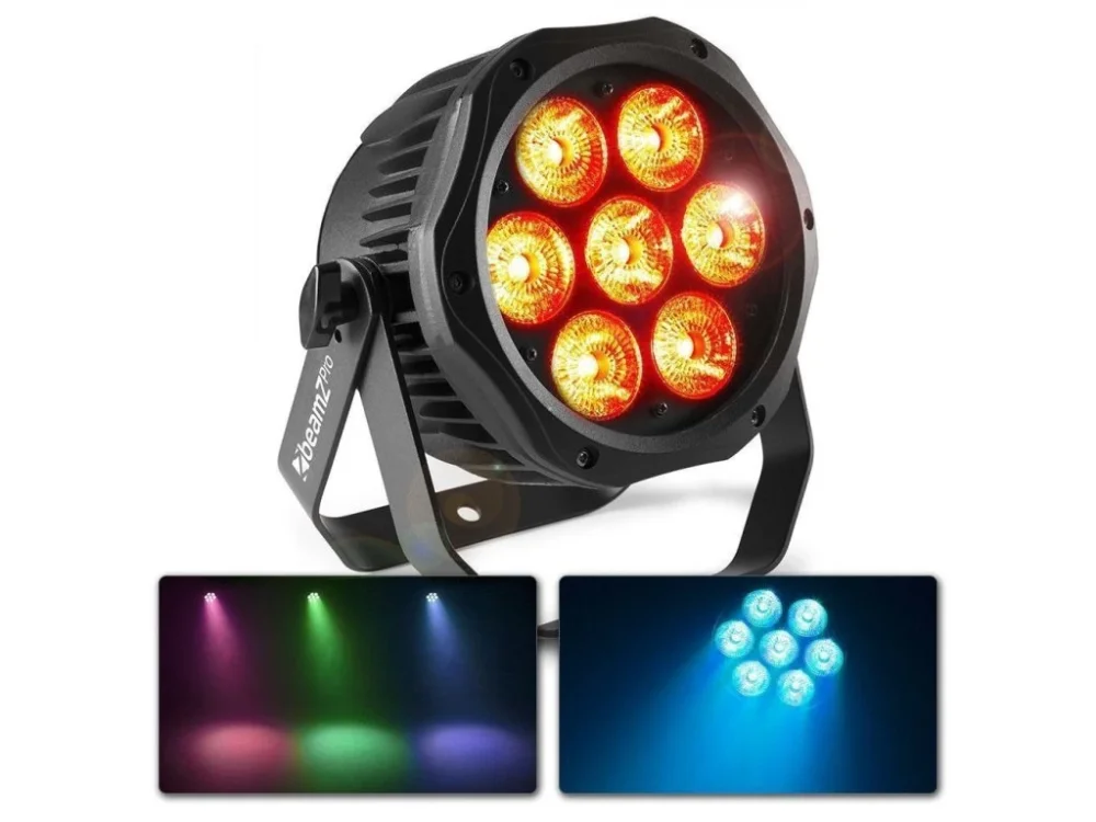 Hliníkový venkovní LED PAR BWA410 IP65. Díky 7x 10W vysoce výkonným RGBW LED diodám 4 v 1 je ideální pro osvětlení budovy nebo jakéhokoli venkovního povrchu. Voděodolný podle specifikace IP65. Obsahuje čtyřtlačítkový LED displej a vodotěsné XLR konektory. Dvojité třmeny zajišťují, že produkt lze namontovat kamkoli si uživatel přeje. Žádný ventilátor – teplo je odváděno hliníkovým pouzdrem.