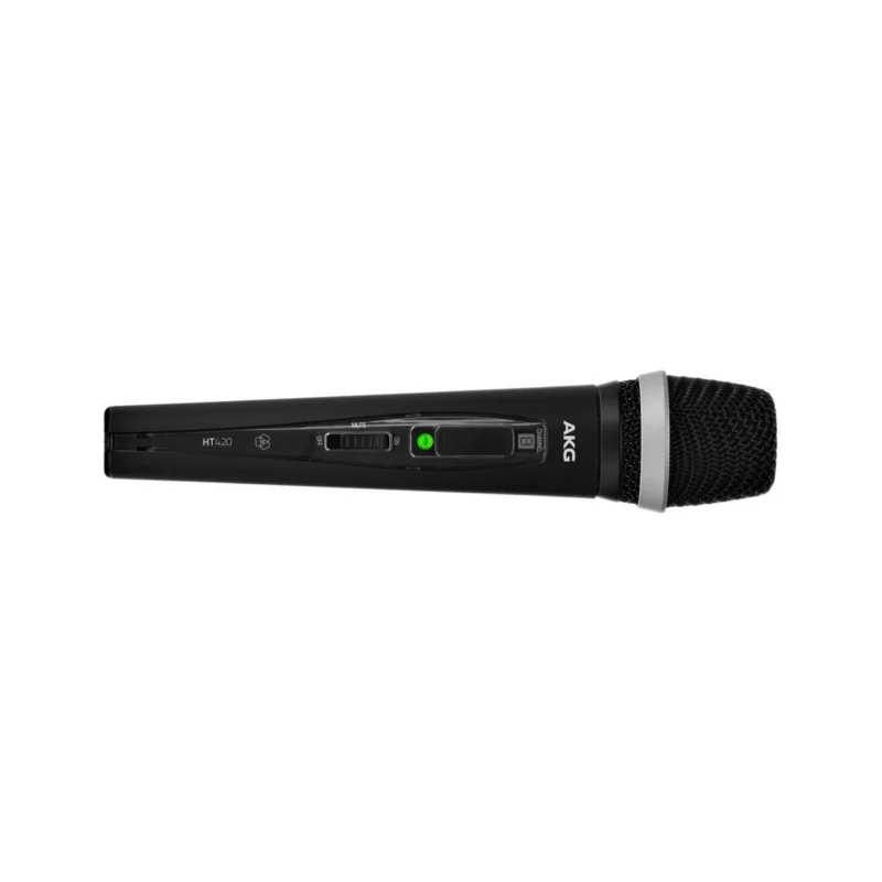 Bezdrátový ruční vysílač s dynamickou vložkou D5, vhodný pro vokály, směrová charakteristika: kardioidní, provoz až osm hodin s jedinou AA baterií, on/off/mute přepínač, hmotnost: 214 g, frekvenční pásmo Band D