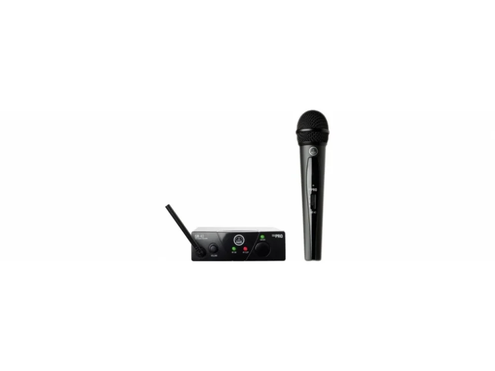 AKG – WMS 40 MINI Vocal • bezdrátový zpěvový set série WMS40 Mini • přijímač SR40 Mini2 • mikrofonní vysílač HT40 Mini • frekvenční rozsah 40Hz – 20kHz • napájení na 1xAA baterii • provoz až 30h • malé rozměry