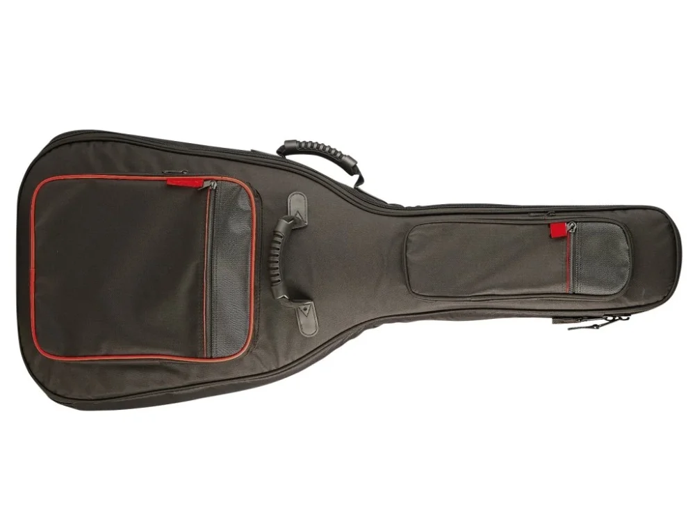 Je vybaven masivními 10 mm zipy, vnější kapsou na příslušenství, podporou krku nástroje, gumovým držadlem a spodní gumovou ochranou nástroje při postavení povlaku.