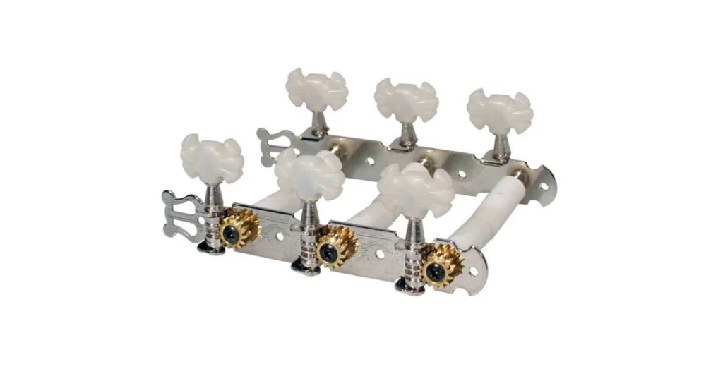 Ladící machanika pro klasickou kytaru, nylonová hřídel, 3x levé + 3x pravé, 70 mm, niklová barva, motýlí model hlavičky