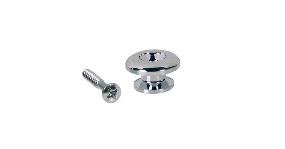 Knoflíky pro kytarový popruh, kovové, se šroubem, sférický model, průměr 17 mm, 2 ks, chromové