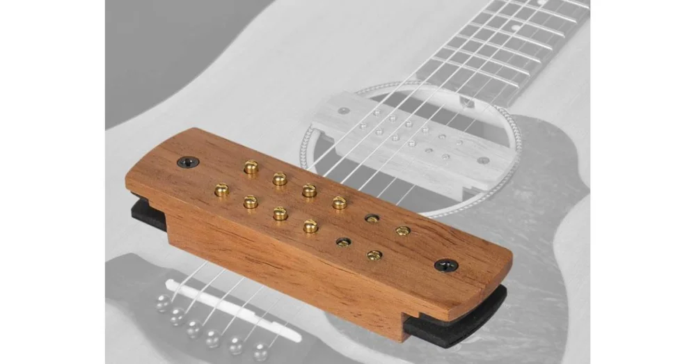 Snímač do rezonančního otvoru humbucker s nastavitelnými póly, 60 cm kabel, Jack koncovka, masivní bubinga kryt