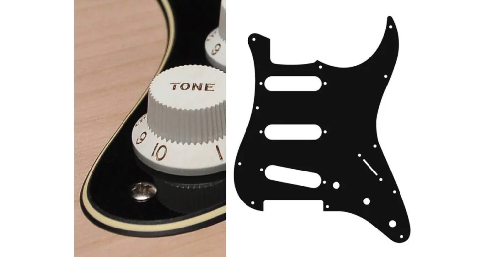 Pickguard, Stallion, standardní, SSS, 3 otvory na potenciometry, 3-5 polohový spínač, 3 vrstvy, černá a krémová barva