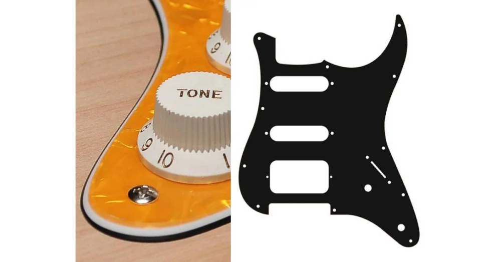 Pickguard, Stallion, SSH, 2 otvory na potenciometry, 3-5 polohový spínač, 3 vrstvy, perlově žlutá barva