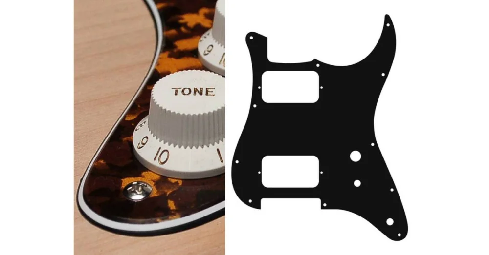 Pickguard, Stallion, HH, 2 otvory na potenciometry, spínač, 3 vrstvy, tygrovaná žlutá barva