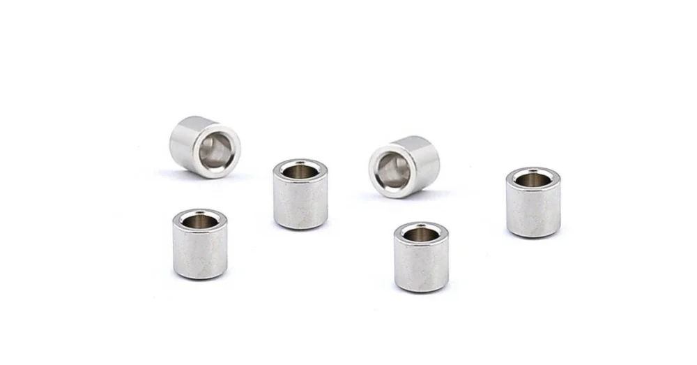 Strunové objímky na přechod struny přes tělo kytary, Teaser, 9,5 mm průměr x 10 mm, 6 ks balení, nikl