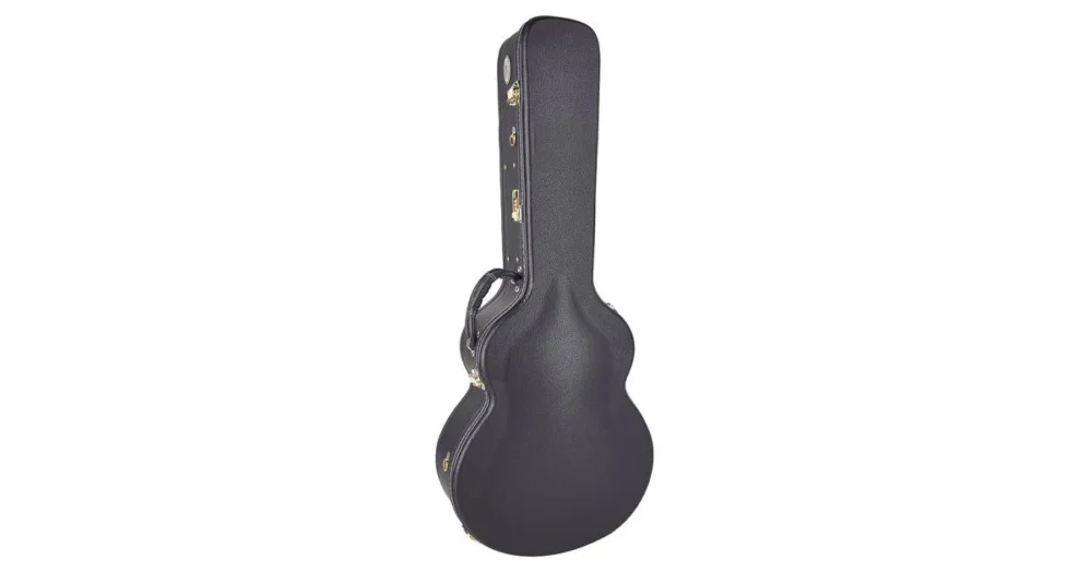 Kufr pro 18″ jazzovou kytaru, dřevěný, klenutý, se zámkem a ramenním popruhem, tvarovaný