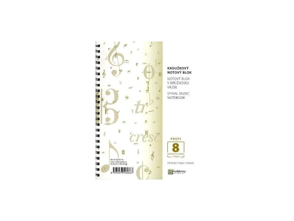 Rozměry: 158 x 210 mmPočet listů: 40Počet osnov: 8Délka osnovy: 185 mmVazba: drátová s boční perforací pro archivaci
