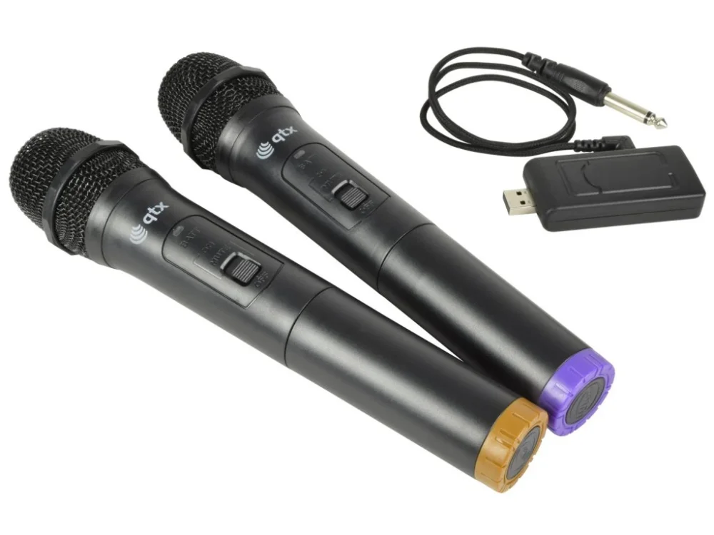 Kompaktní a snadno nastavitelná sada bezdrátových mikrofonů UHF se dvěma ručními vysílači a jediným přijímačem USB. Přijímač se jednoduše připojí k USB portu a napájí výstup obou mikrofonů. Na přijímači je k dispozici zásuvné připojení USB, které umožňuje, aby byl port USB nadále používán pro připojení k médiím nebo jiným zařízením USB. Ruční vysílač je napájen dvěma AA bateriemi a každý z nich pracuje na jiné UHF frekvenci. Tento systém lze připojit ke standartnímu napájecímu zdroji USB a odpadá tak potřeba připojení k samostatnému přijímači.