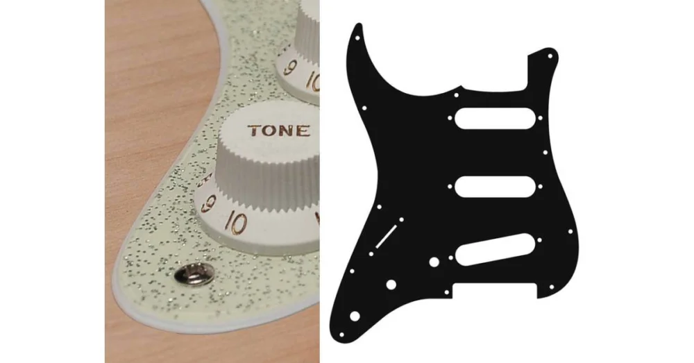 Pickguard, Stallion, standardní, SSS, 3 otvory na potenciometry, 3-5 polohový spínač, pro leváky, 2 vrstvy, barva: třpytivá šampaňská