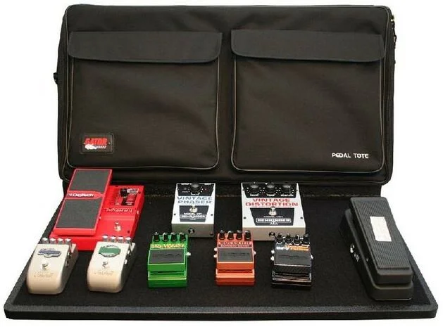pedalboard, rozměry desky 30 x 16 cm, vyroben z velmi tuhé překližky, v ceně černý nylonový obal a napájecí zdroj