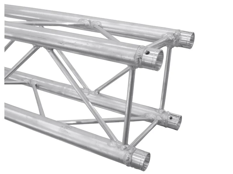 DECOLOCK DQ4 4-point truss systemDECOLOCK DQ4 is a 4-point truss system made of aluminum. The individual elements are connected via four cones, pivots and pins.The advantage of the conical connection system is that the cones completely fit into the main chords so that highest load capacity is guaranteed. The Quick-Lock system enables fast, efficient and highly aesthetic assembly when the truss constructions are frequently assembled and dismantled.The four main chords are made of 35 mm aluminum tube with 2 mm wall thickness and offer sufficient strength at a low weight. The braces have a diameter of 10 mm with 2 mm wall thickness and provide the system with a decorative appearance.With DECOLOCK, you can realize compact installations with low self weight, e. g. for shop displays, shop decorations, exhibitions, interior design, fair booths, discotheques and theatres.DECOLOCK is primarily designed for decorative installations and can be used for permanent or temporary installations due to its highly aestethic appearance. The advantages of this system are the compact construction with 220 mm outer dimensions, low weight, optimum strength along with easy and quick assembly.The documentation of this truss system is closely related to the Codes of Practice SQ P1 – Truss Systems published by the VPLT/PLASA. The load table as calculation base can be downloaded from the Internet before buying the product!Please note: this truss system must never be combined with other systems!