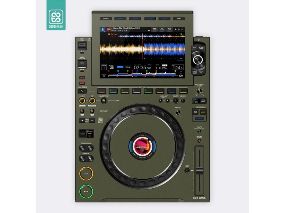Nalepovací skin pro DJ přehrávač AlphaTheta CDJ-3000X v provedení FULL COLORS, barva army green (vojenská zelená).