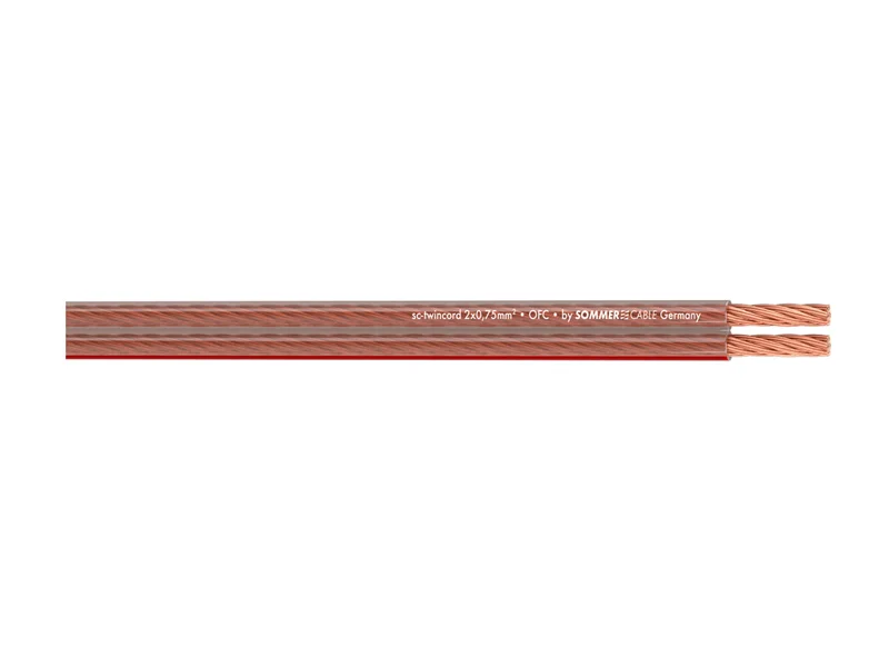 Reproduktorový HIFI kabel s průřezem 2×0,75mm, základní třída HIFI kabelů Sommer Cable z vysoce kvalitní mědí, vodiče jsou spleteny z jemných drátků 24×0,20mm, ideální pro domácí hifi komponenty a umístění pod koberec. Efektní průhledná PVC izolace s označením. Hmotnost 1m 23g.