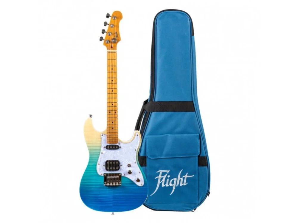 Připravte se na rock! Tenorové elektrické ukulele Flight Pathfinder v barvě Transparet Blue patří do Rock série. Tělo se dvěma výřezy a ocelové struny nabízí zvukové možnosti jako skutečná elektrická kytara. Dýha z vlnkovaného javoru s krásným fládrováním nalepená na těle z lipového dřeva dává nástroji luxusní vzhled. Ukulele má šroubovaný krk vyrobený z „pečeného“ javoru a ze stejného materiálu je i hmatník. Nástroj je osazen pevnou kobylku a jedním jednocívkovým a jedním dvoucívkovým snímačem. Potenciometry pro ovládání hlasitosti a tónové clony jsou společné. Výběr snímače je pomocí třípolohového přepínače. Klasická konstrukce, schodná se stavbou dospělé elektrické kytary, umožňuje použít pro zesílení zvuku jakékoli zesilovače pro elektrickou kytaru i efektové pedály.