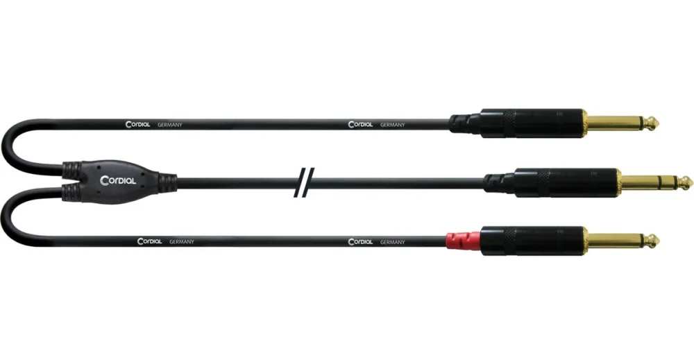 Y stereo kabel, Jack 6.3 stereo – 2x Jack 6.3 mono, délka 3 metry, barva černá