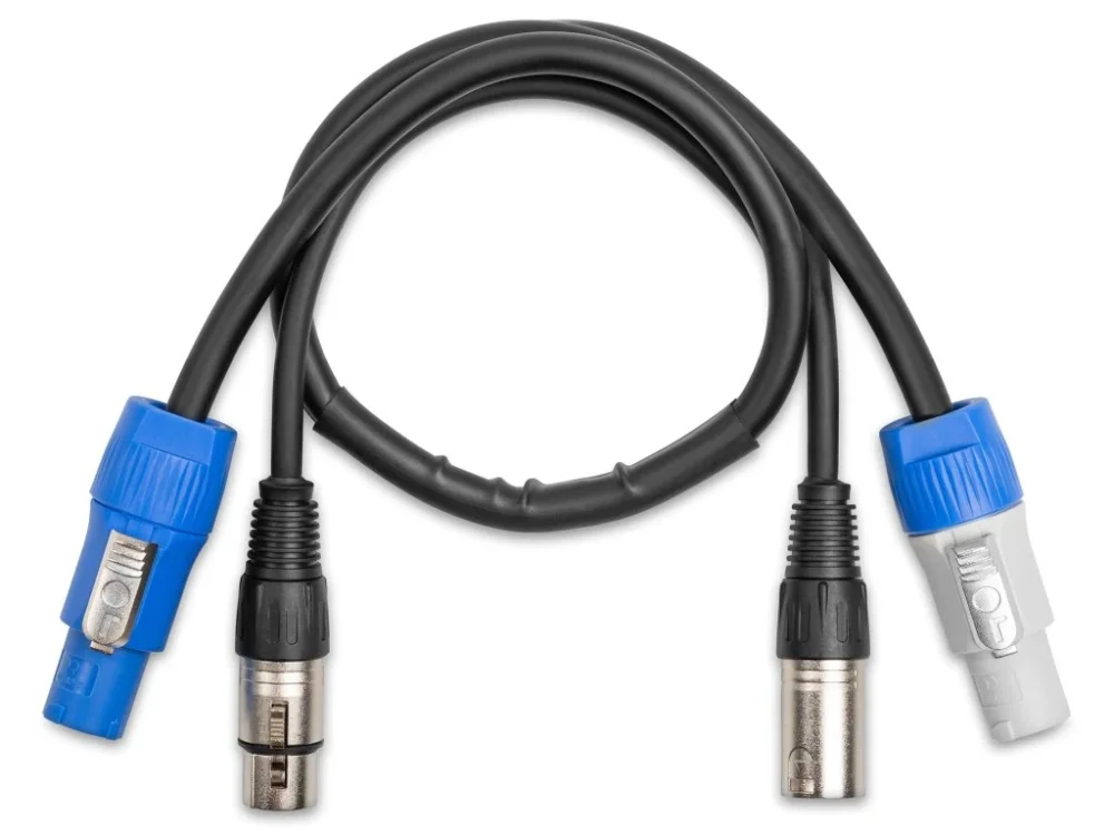 Napájení a DMX signál v jednom kombinovaném kabelu. Díky konektorům Powerconnector a XLR na obou koncích usnadňují tyto kabely zapojení profesionálních LED efektů, pohyblivých hlav nebo wall washerů.