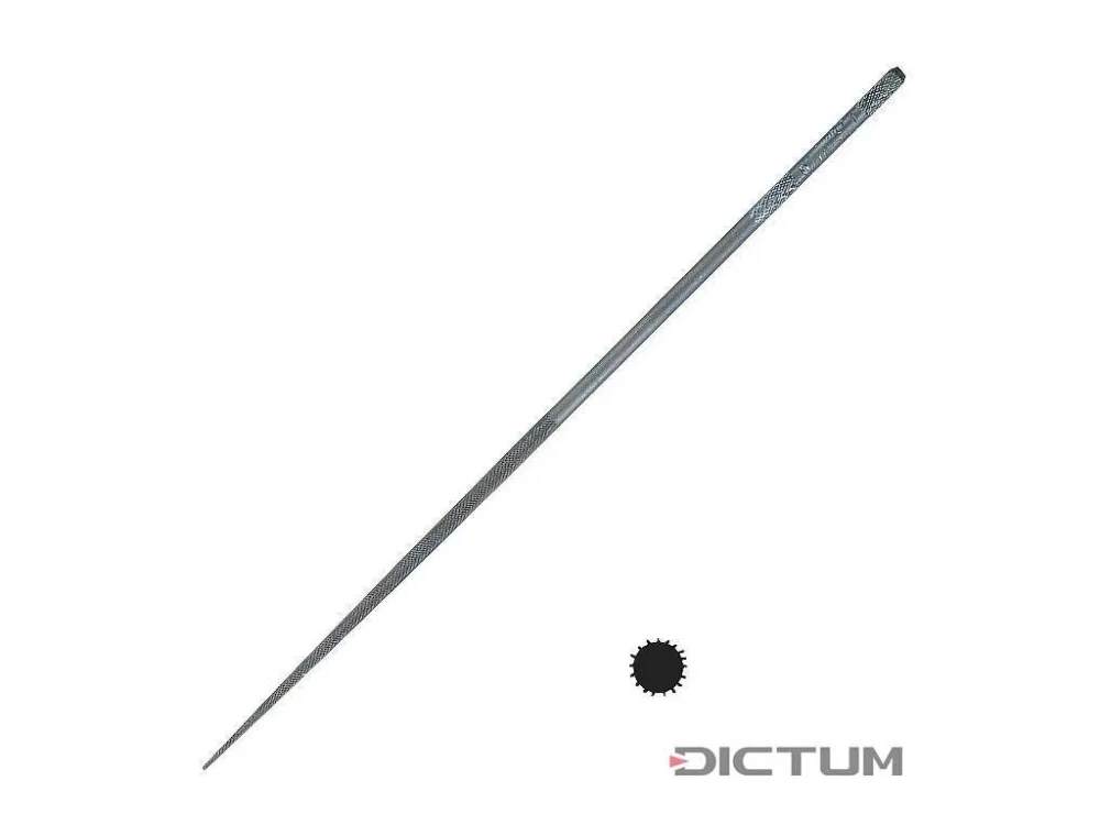 Kulatý pilník.Pilník je kalen na tvrdost 64-65 HRC, je určen pro práci s ocelí, ale je vhodný i pro jemné opracování dřeva, hliníku, mosazi a tvrdých plastů.Hrubost seku 2 – jemný.