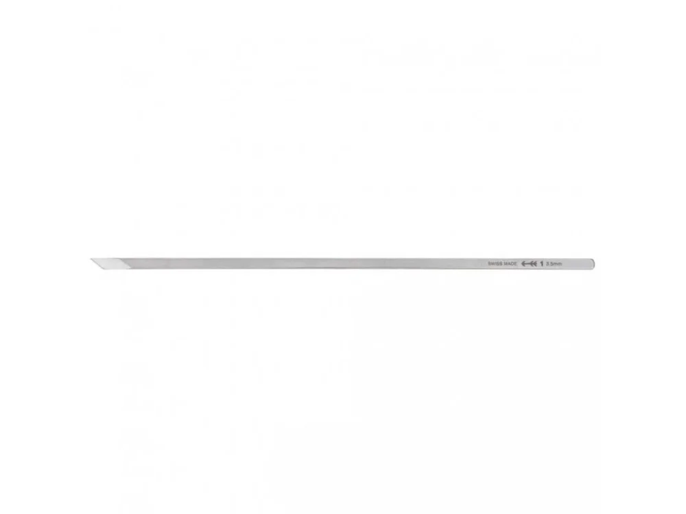 Čepel nože je zhotovená z legované švýcarské oceli o tvrdosti 59 – 60 HRC, má oboustrannou fazetu.