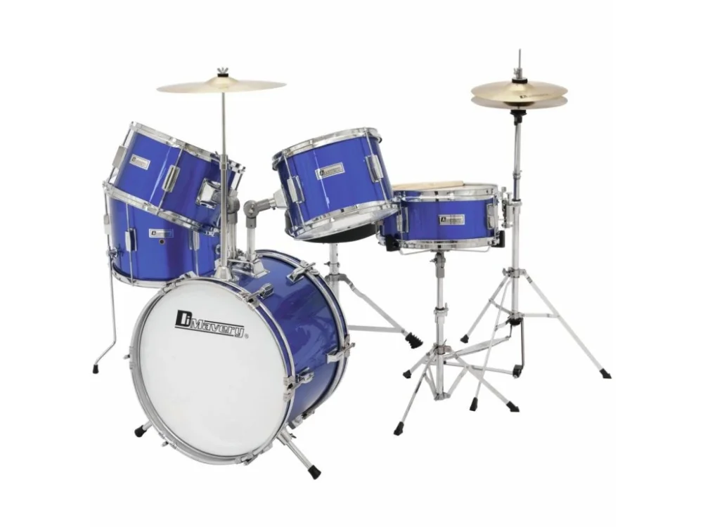 Sada bicích JDS-305 5-ti dílná s hardwarem. Korpusy z 6-ti vrstvé překližky. Obsahuje: BD 16″x11″ (6 šroubů) + TT 10″x7″ (4 šrouby) + TT 11″x7″ (4 šrouby) + držák tomů + FT 13″x10″ (6 šroubů) + dřevěný SD 12″x5″ (4 šrouby) + stolička + šlapka + stojany pro SD, Hi-Hat a činel + činely 10″ Hi-Hat a 12″ crash. Barva modrá.