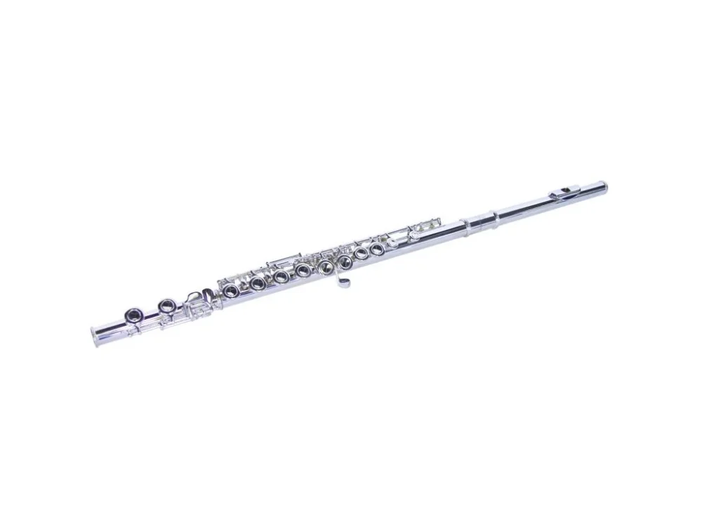 C příčná flétna, uzavřené klapky (Plateau systém), s E machanikou, vysunuté G, postříbřená, s plastovým kufrem.