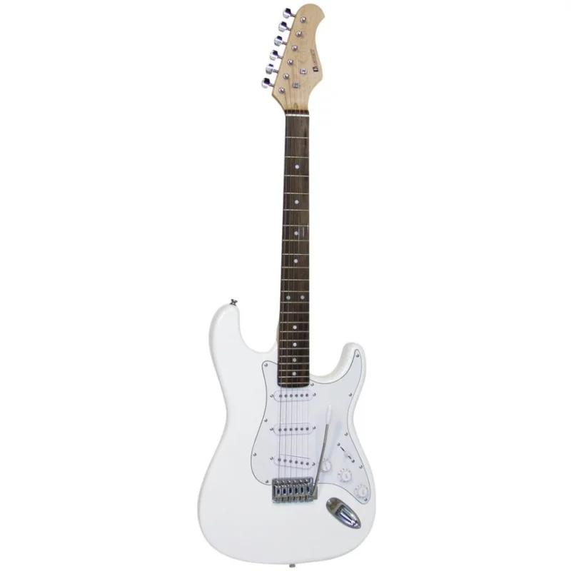 Elektrická kytara typu Strat. Tělo jasan, šroubovaný krk javor, menzura 648 mm, hmatník blackwood, 22 pražců, kobylka klasické tremolo typu Strat, chromovaná mechanika, 3x jednocívkový snímač (single coil), 1x ovládání hlasitosti, 2x ovládání tónu, 5-ti polohový přepínač. Barva bílá.
