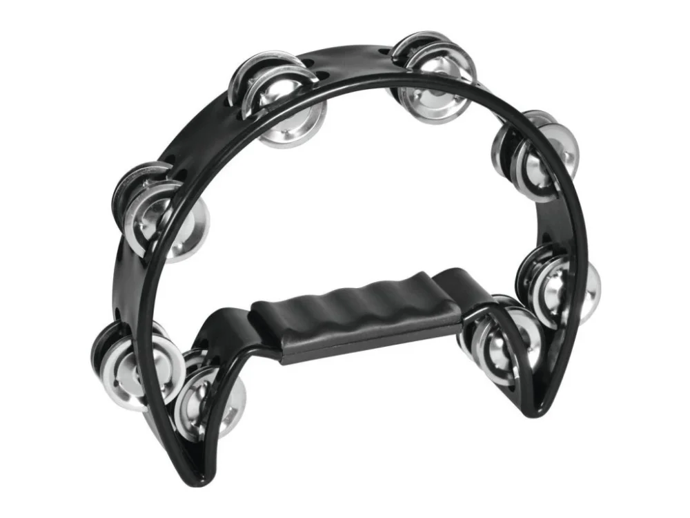Tamburína u černého plastu. 16 párů poniklovaných plíšků, tvarované držadlo. Barva černá.