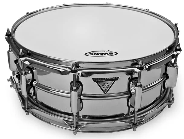 Ocelový virbl od Dixon z nejvyšší řady Artisan. Vyznačuje se ostrým, tmavým a hlubokým zvukem.