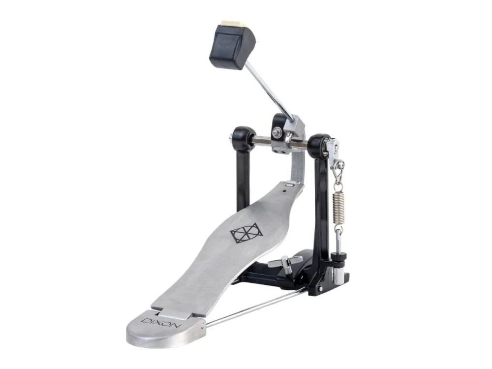 DIXON PP-PO – jednoduchý single pedál s páskovým převodem, hladkou hrací plochou a oboustranným beaterem (filc/plast)