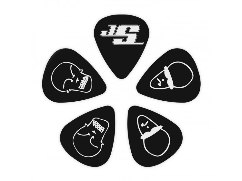 JS Design picks are made of premium celluloid and are available in white with black printing or black with silver printing. Each 10-pack includes 1 each of 10 original Joe Satriani designs.