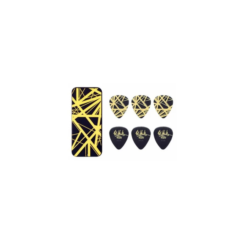 Sada trsátek v plechové krabičce, design podle kytary Eddiho Van Halena, tvrdost: 0.6 mm, 6ks