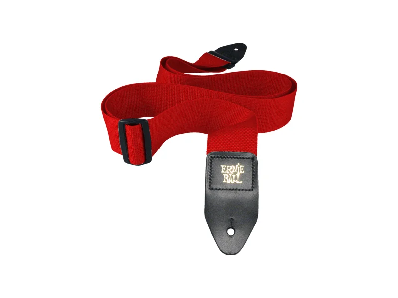 Konce popruhu jsou opatřeny pevnými koženými koncovkami se zlatou ražbou s logem Ernie Ball.