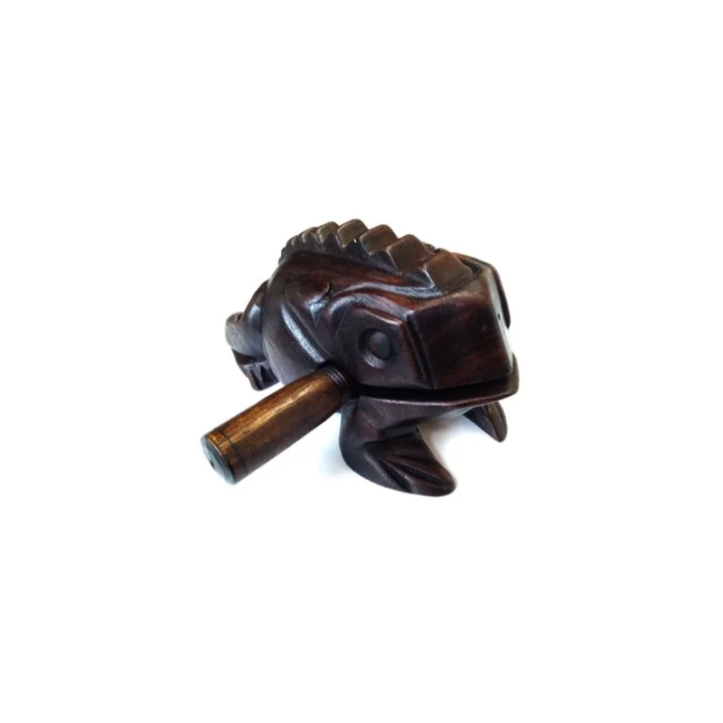 Guiro žabák XL – velký. Guiro je původem jihoamerický perkusní nástroj. Hraje se třením hůlky o hroty zářezů. Guiro je běžně používán ve formách latinskoamerické hudby a hraje klíčovou roli v typické rytmické sekci.