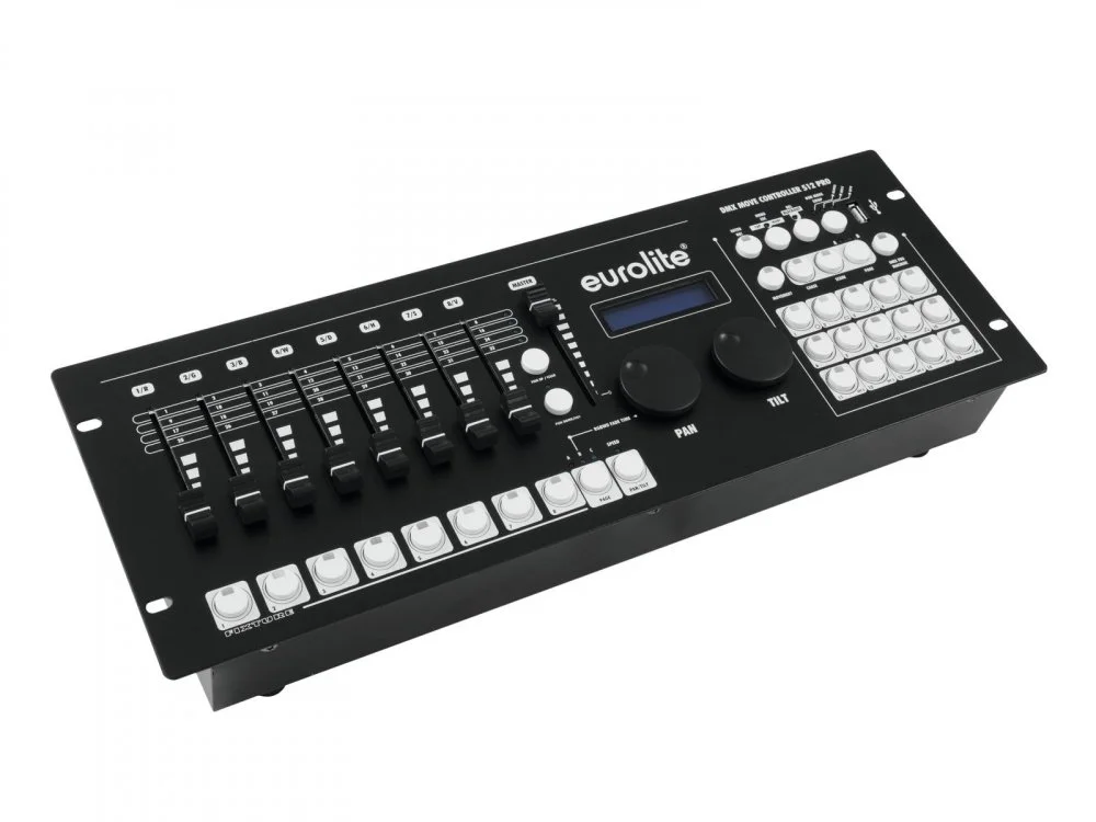 Profesionální DMX ovladač světelného parku vhodný pro řízení pohyblivých hlavic, skenerů, reflektorů a dalších světelných efektů s DMX ovládáním a RGBW mícháním barev. 512 DMX řídících kanálů je možné přiřadit i inverzně (obráceně), lze ovládat až 24 efektů, každý s 34 kanály. USB port pro ukládání nastavených programů. Snadné a rychlé programování díky 9 integrovaným pohybovým a 6 barevným vzorům (pozice PAN/TILT, časovač stmívání a rychlost běhu programu). Možnost současného použití několika pohybových a barevných vzorů, uložení 30 editovatelných programů (chase), každý se 100 scénami. Spuštěné programy lze ovládat manuálně, časovačem nebo hudbou pomocí zabudovaného mikrofonu. 30 samostatných programovatelných scén. 8 motorizovaných faderů pro ovládání jednotlivých DMX kanálů umožňuje přesné nastavení programů a automatické nastavení parametrů při přepínání jednotlivých programů, scén a paměťových bank. Dvě JOG kola pro přesné nastavení pohybů PAN/TILT. Master fader pro regulaci barev a stmívání, funkce Blackout. Ovládací tlačítka jsou pro lepší orientaci podsvícená, ovladač je vybaven přehledným LCD displejem (2 x 16 znaků). Podpora RDM, připojení DMX zařízení pomocí 3 pinového konektoru XLR. Aktualizace firmware přes USB, racková 19“ velikost, výška 3HE. Ideální ovládací jednotka světelného parku pro diskotéky, taneční kluby i mobilní DJe.