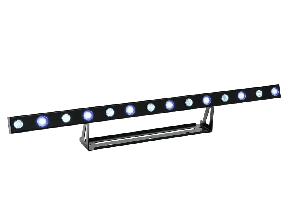 Provozovatelný v stand alone režimu nebo přes DMX. Ovládání DMX512 možné přes jakýkoli komerční DMX ovladač (zabírá max. 15 kanálů). Na výběr jsou 3, 4, 6, 10, 12 nebo 15 DMX kanálů. Každý Beam-LED lze ovládat individuálně přes DMX. Ovládání zvukem pomocí vestavěného mikrofonu s nastavitelnou citlivostí mikrofonu. Adresování a nastavení pomocí ovládacího panelu se 4místným LED displejem. Funkce: Statické barvy, RGB směs barev, vestavěné programy show v režimu auto a ovládání zvuku, nastavení dimmer a stroboskopu, Master/Slave. 7 studených bílých 3W LED pro efekty paprsku (úhel paprsku 2°). 7 výkonných 7W RGB LED (3v1) pro Wash-Effects (úhel paprsku 40°). Možnost zavěšení i postavení nastojato. Možnost aretace na montážní konzole. Chlazení ventilátorem. Průchozí výstup umožňuje napájet až 8 zařízení. Spínaný napájecí zdroj pro provoz mezi 100 a 240 volty. Napájecí vstup P-Con a průchozí výstup pro napájení až 8 zařízení.