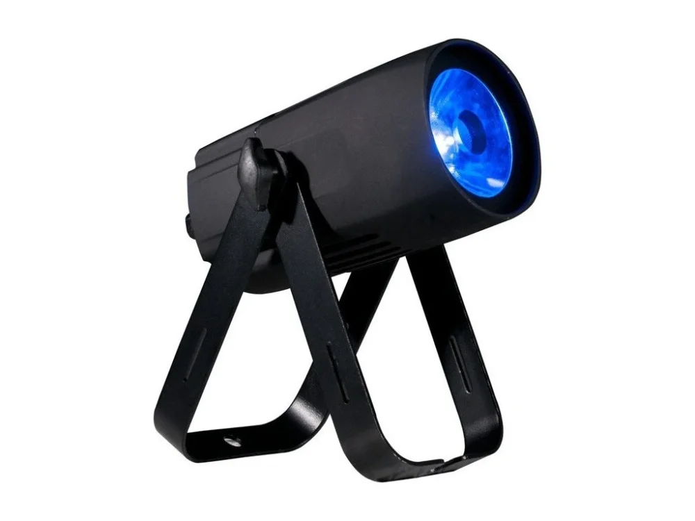 Saber Spot RGBW má nůžkový držák, který umožňují jeho zavěšení nebo uchycení na zemi a je ideální k použití na jevištích, bodovému osvětlení stolů či osvětlování obchodů.