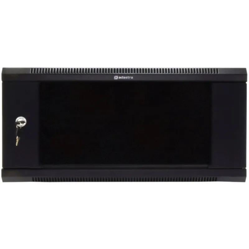 Racková skříň pro 19″ vybavení s odnímatelnými bočními panely a uzamykatelnými předními dveřmi. Vyrobeno z oceli válcované za studena se speciálně upravenými hranami pro větší pevnost a stabilitu. Přední a zadní lišta je připevněna k vnitřku skříně, což umožňuje úpravu hloubky montáže tak, aby vyhovovala vybavení s převislými armaturami. Horní panel je odvětráván a má výřez pro montáž chladicího ventilátoru. Odnímatelné uzamykatelné přední dveře z 5 mm tvrzeného skla, které je navíc lemovano ohnutými ocelovými lištami, díky kterým lze určit otvírání z levé, či pravé strany. Zadní panel s upevňovacími otvory pro montáž na zeď. Bytelně navržený rack pro profesionální instalace.