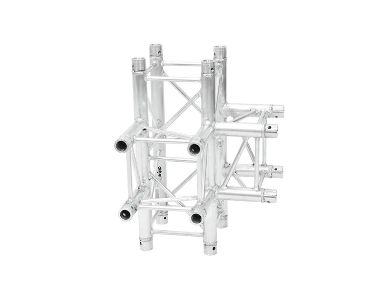 Quadlock 6082T-42, 4-koncový T-díl, 4-bodový konstrukční systém. Vysoce kvalitní hliníkové provedení, čtyři hlavní trubky s průměrem 50 mm a šířkou stěny 2 mm, příčky s průměrem 16 mm a šířkou stěny 2 mm. Jednoduchá instalace, nízká hmotnost. Pro přehlídky, instalace v obchodech, diskotéky a divadla.