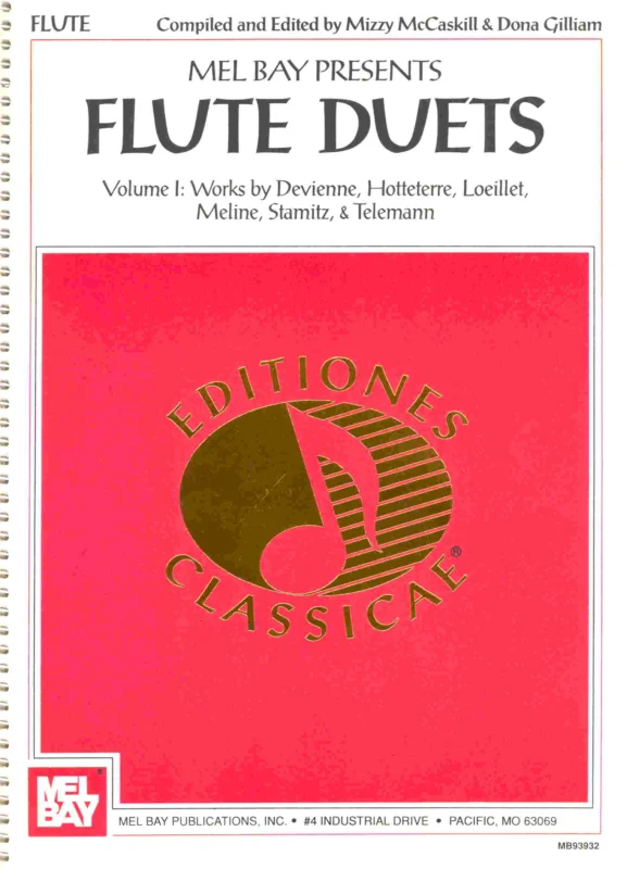 Obsáhlá kolekce 36 duet pro dvě příčné flétny. Prvních skladba uvedená v seznamu skladeb je výběr 24 krátkých progresivních duet z populární The Modern Flute Professor od Florant Meline, po té následují dueta od známých „flétnových“ skladatelů Loeillet, Devienne a Telemann. Noty jsou doplněny o originální barokní interpretační znaménka a v sešitě naleznete také jejich vysvětlení včetně notového zápisu.