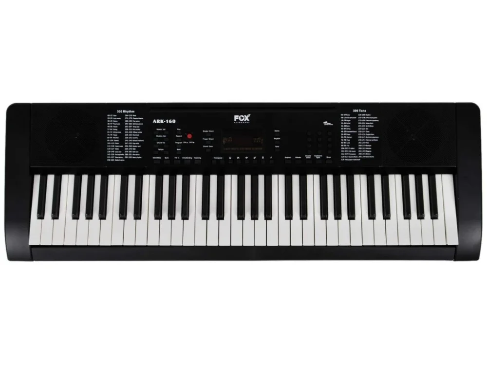 FOX 160 nabízí 61 kláves standardní velikosti, 128 zvuků a 128 automatických doprovodů. Nechybí ani pokročilé funkce jako Split (rozdělení klaviatury pro hru na dva nástroje zároveň), Dual Voice (vrstvení zvuků), nebo nastavení Sustainu (dozvuku) a Vibrata.