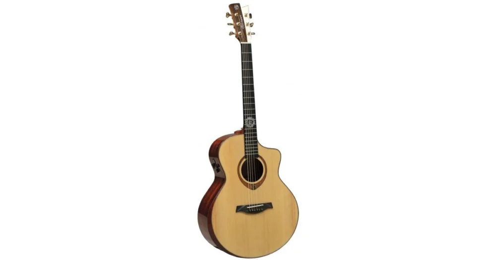 Celomasivní elektroakustická kytara typu grand auditorium s výřezem v lesklém provedení natural s přední deskou s výběrového smrku Sitka A+ a zadní deskou a luby z masivního mahagonu. Krk je také mahagonový, hmatník o šířce 43 mm s perleťovým vykládáním a kobylku tvoří eben. Kolíky do kobylky jsou dřevěné a skvěle tak ladí s odstínem samotné kobylky. Tělo je opatřeno mahagonovou lemovkou a zkosenou hranou tzv. arm rest, pro ještě komfortnější a příjemnější pocit ze hry. Na nultý pražec a kobylkovou vložku je použita umělá kost. Hardware má zlaté provedení a na mechanikách najdete zámky, které zajišťují ještě větší stabilitu ladění. Na kytaře jsou nataženy struny Exlixir PB Anti-Rust 12-53. Nástroj osazen značkovou elektronikou Fishman Flex Plus T (FLX-CAA-AAA) s integrovanou ladičkou. Teto model představuje vlajkovou loď značky Gilmour, jde o nejvyšší celomasivní model vyrobený z výběrových materiálů.