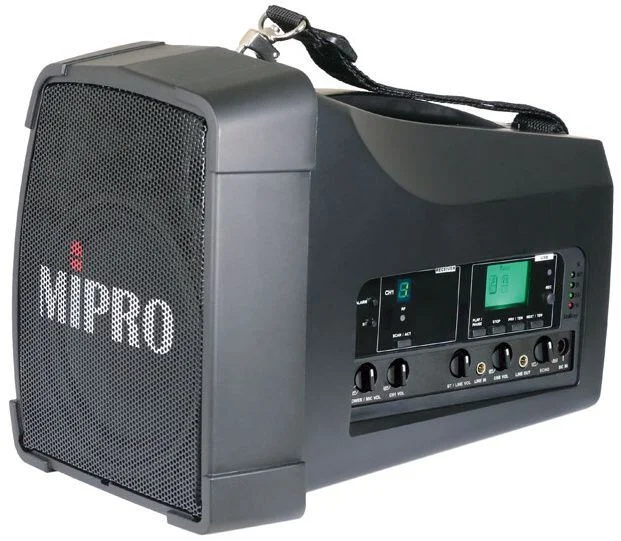 ozvučovací systém, 60W, zesilovač třídy D, 2-pásmový reproduktor 5″ + 1″,  Bluetooth, zabudovaný bezdrátový přijímač na 16 frekvencích, USB vstup pro přehrávání MP3 skladeb, vstupy: mikrofon, linka, popruh přes rameno, provoz na vestavěný akumulátor s výdrží až 8 hodin nebo připojením do el. sítě, rozměry 163 x 204 x 276 mm, hmotnost 2.4 kg, za příplatek bezdrátový vysílač (handka nebo bodypack), hlavový či klopový mikrofon