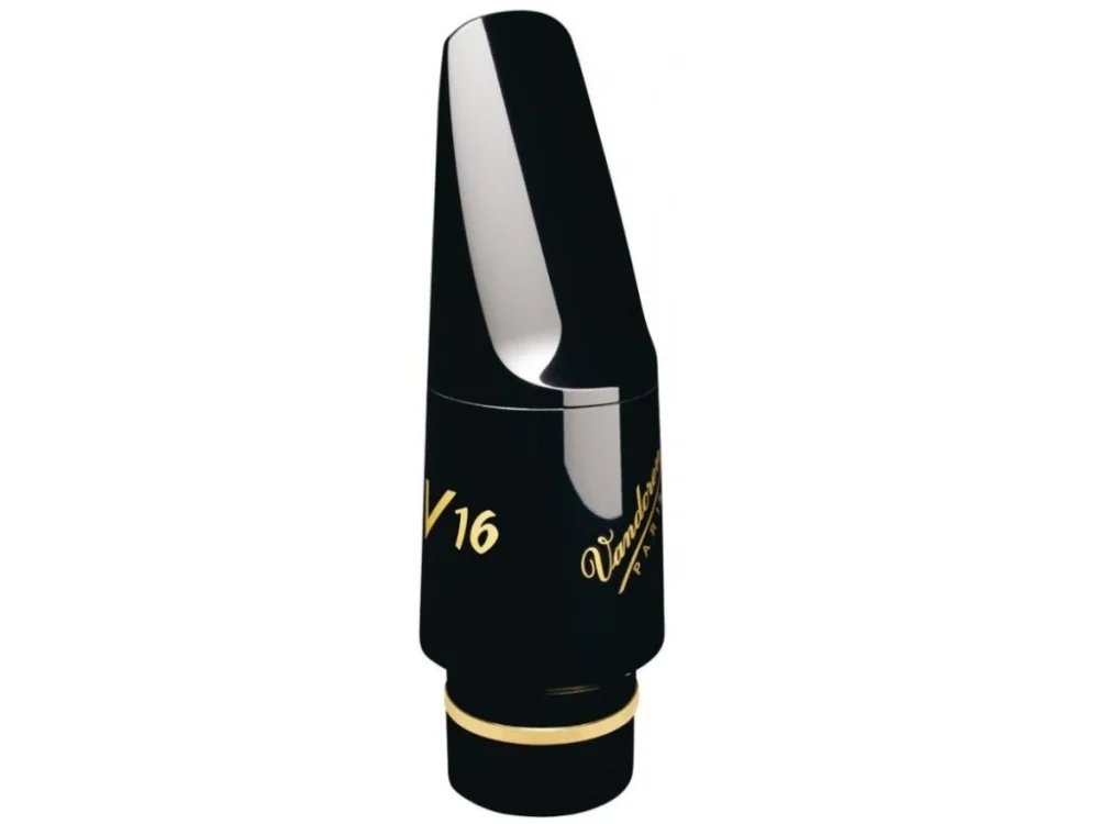 Ebonitová hubička pro alt saxofon Vandoren V16 s odklonem 210 se středně dlouhou délkou dráhy a menší komorou, vhodné pro sólovou hru (jasná artikulace výšky tónu).