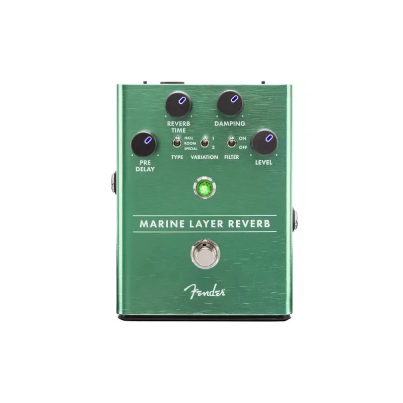 Kytarový efekt typu reverb/echo značky Fender nabízí dozvukové efekty studiové kvality s několika módy, Hall, Room, Shimmer, podsvícené potenciometry, bytelné provedení a parádní zvuk.Reverb je základním prvkem téměř v jakémkoli kytarovém efektovém řetězci. Marine Layer Reverb nabízí několik typů reverbu včetně klasických jako Hall a Room spolu s moderními zázraky, jakým je mód Shimmer a činí tento pedál nepostradatelným ve vašem signálovém řetězci. Dozvuk reverbu se dokončí i při vypnutí efektu a to zaručuje právě přirozený dozvuk. Přední panel je dále vybaven ovládacími prvky pro nastavení zpoždění ozvěny Pre-Delay, Reverb time pro nastavení délky ozvěny, Damping pro nastavení postupného tlumení ozvěny a Loevel pro nastavení výstupní hlasitosti efektu. K dispozici jsou i přepínače pro přepínání módů Hall, Spring a Special, Variation pro dvojici variaci reverbů a spínatelný filtr.